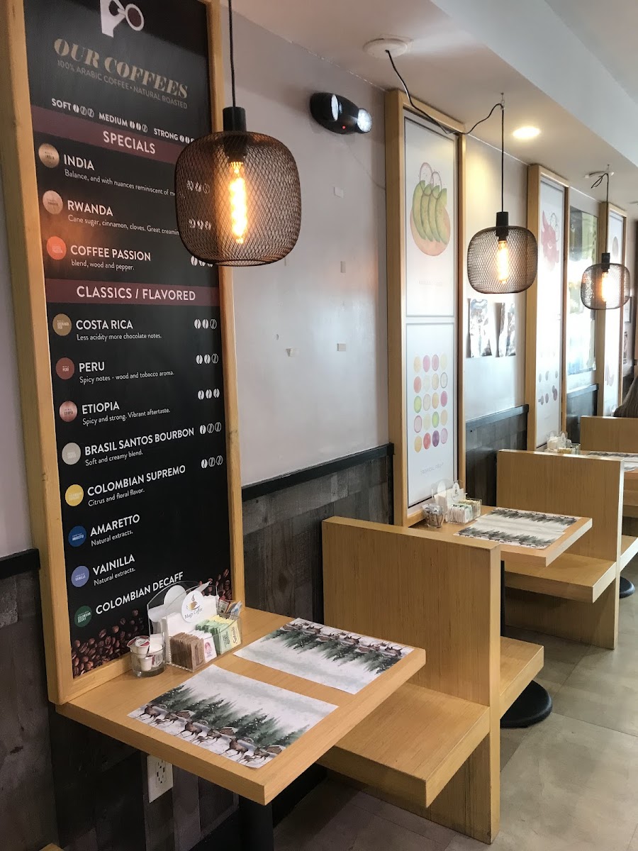 The menu accommodates both sit-down dining and quick orders, with options appropriate for different times of day, from morning meals to midday light lunches.